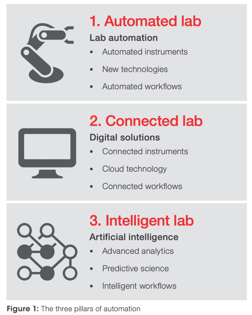 Secondo il documento “LAB OF THE FUTURE” di Thermo Fisher Scientific , il percorso verso un laboratorio moderno e digitale si articola principalmente attraverso tre livelli interconnessi: