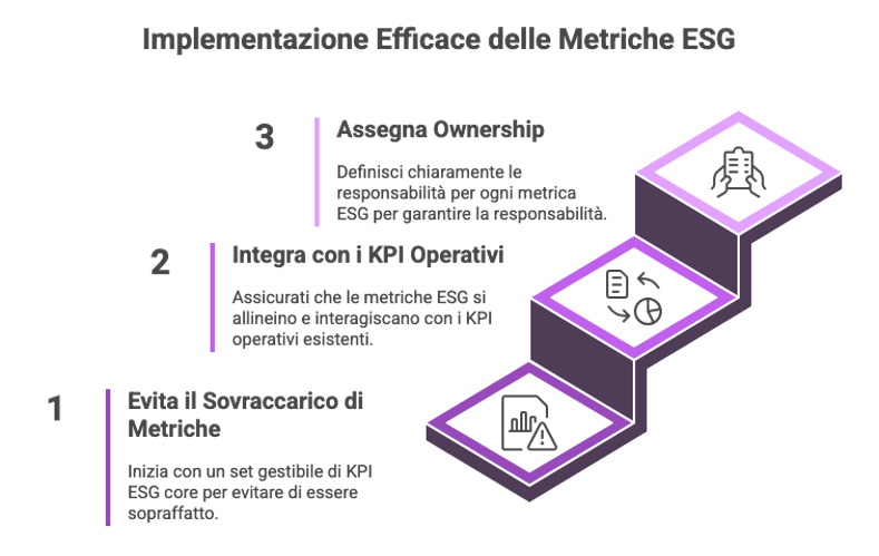 Assegna chiaramente responsabilità per ogni metrica ESG, proprio come fai per i KPI produttivi.